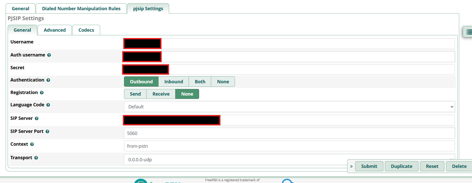 SIP server: Your termination SIP URI which you have created when configure Elastic SIP trunk in Twilio