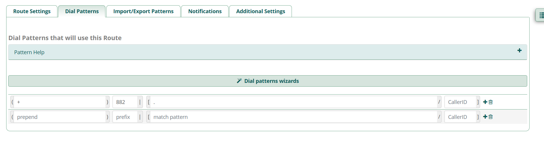For outbound calls to work, you will need a specific outbound route. Ensure you add prefix “+” on each of your dial plan like example below